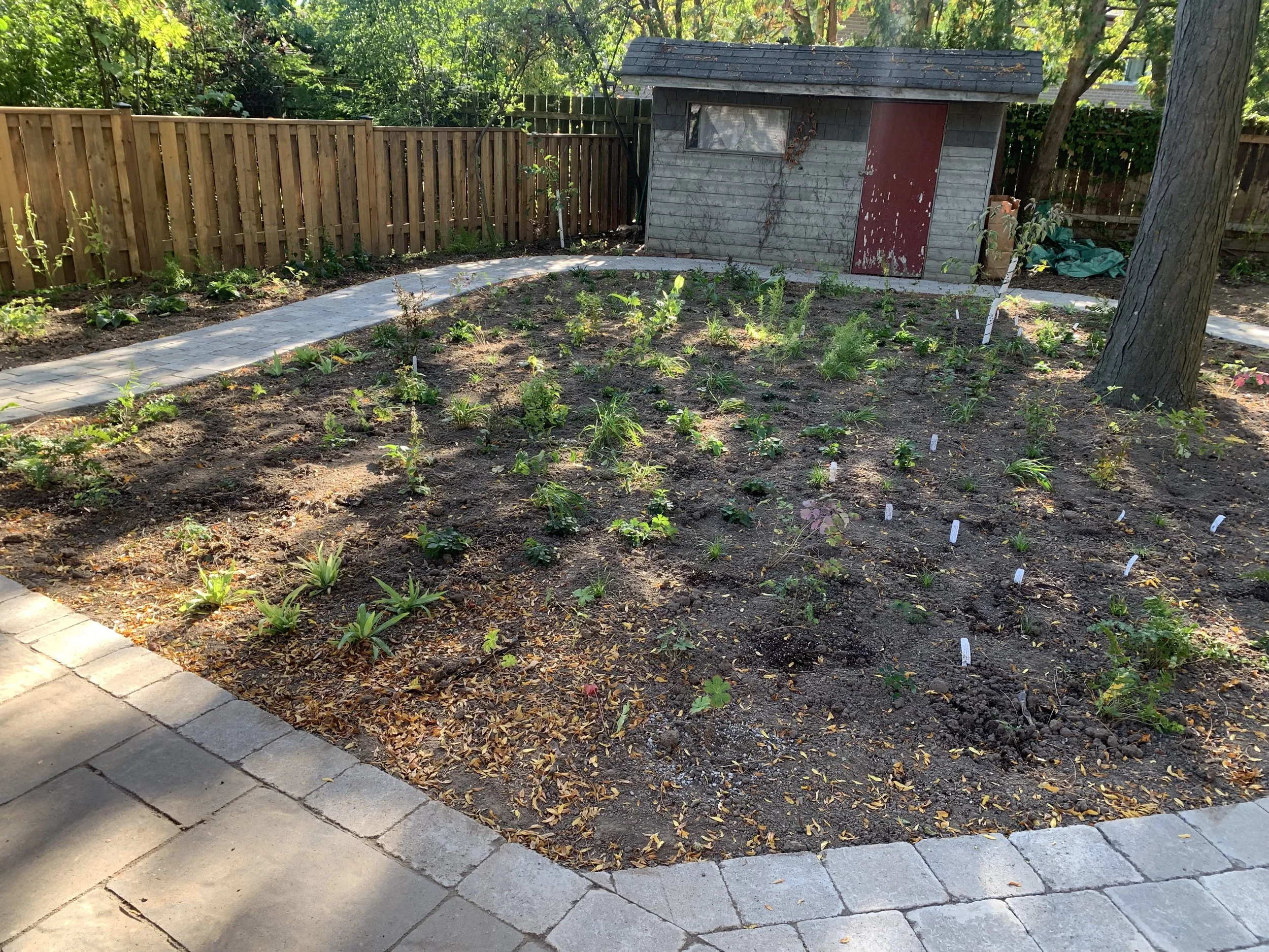 A newly installed stone pathway, installed by another contractor, had disturbed the soil and reset the site into an early successional state. Ecologically, this meant the garden needed fast-spreading stabilizing species to quickly reclaim ground and protect the soil otherwise invasive plants would quickly re-colonize.