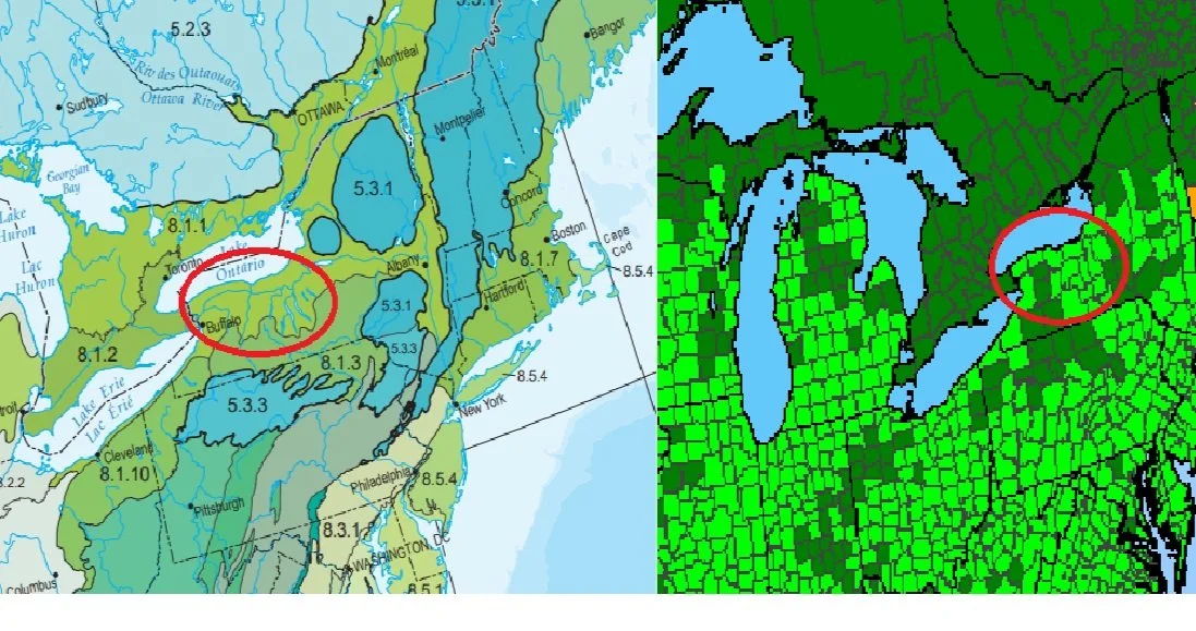 This site provides reliable county-level plant ranges for the U.S.A. and province-level ranges for Canada (Canada is far behind on this sort of thing and has less specific ranges, unfortunately). For Canadians, this can still be helpful if you ignore the political boundaries and compare these maps to our ecoregion maps. Look for any overlap between your plants’ range and your ecoregions range. For our example plant, you can see that our ecoregion covers parts of southern Ontario and crosses into New York.